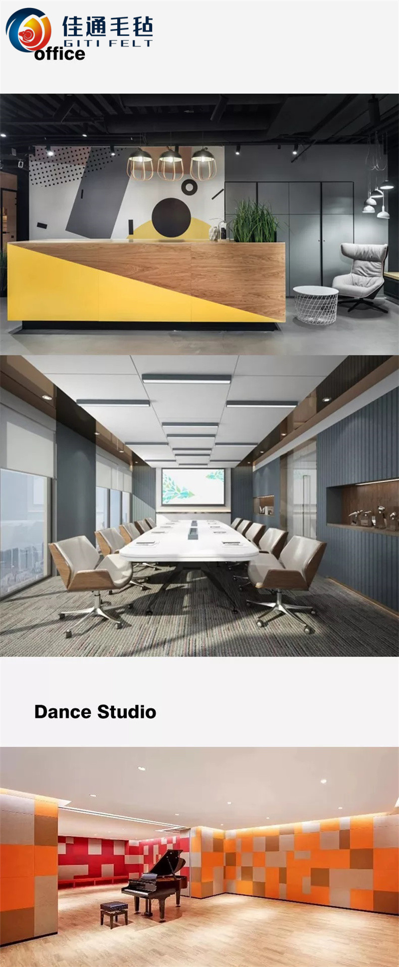 產(chǎn)品名稱:PET毛氈板、毛氈墻、聚酯纖維吸音板、裝飾毛氈: